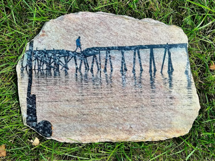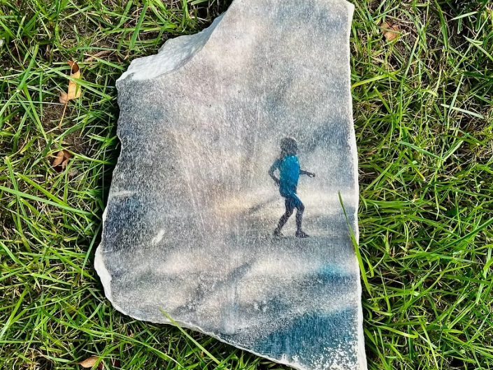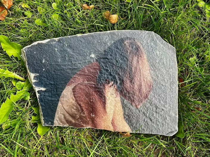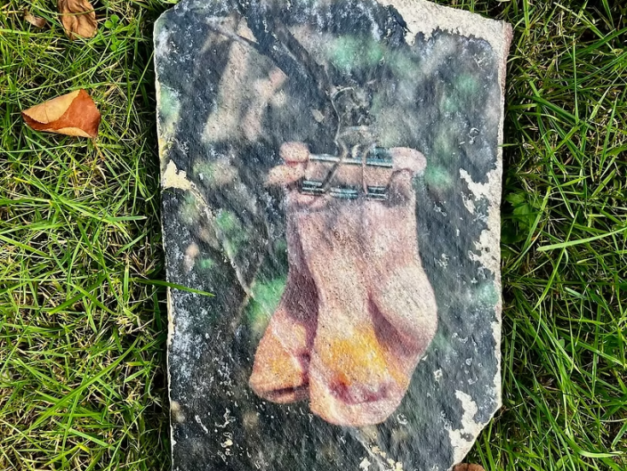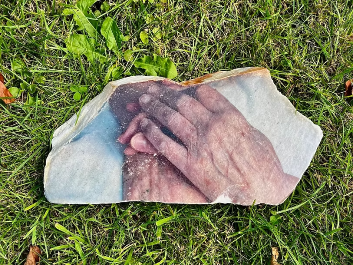 Het idee om stapstenen te bedrukken met foto’s ontstond door me te realiseren dat de tijd meedogenloos voortschrijdt en niet meer terug te draaien valt. Dit gegeven geldt voor iedereen. We dragen allemaal vergankelijkheid met ons mee.