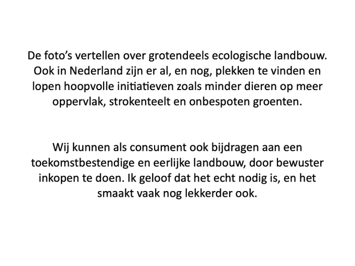 Ik volg momenteel een agrarische opleiding, omdat ik graag ook professioneel een bijdrage wil leveren aan een duurzame landbouw. Vanuit de praktijk én in voorlichting en advisering. Ik werk op een biologische zorgboerderij en als projectcoördinator bij een landelijke vereniging voor gemeenschapslandbouw. De foto’s heb ik genomen bij mijn tweede thuis in Frankrijk, een plek die me dierbaar is.